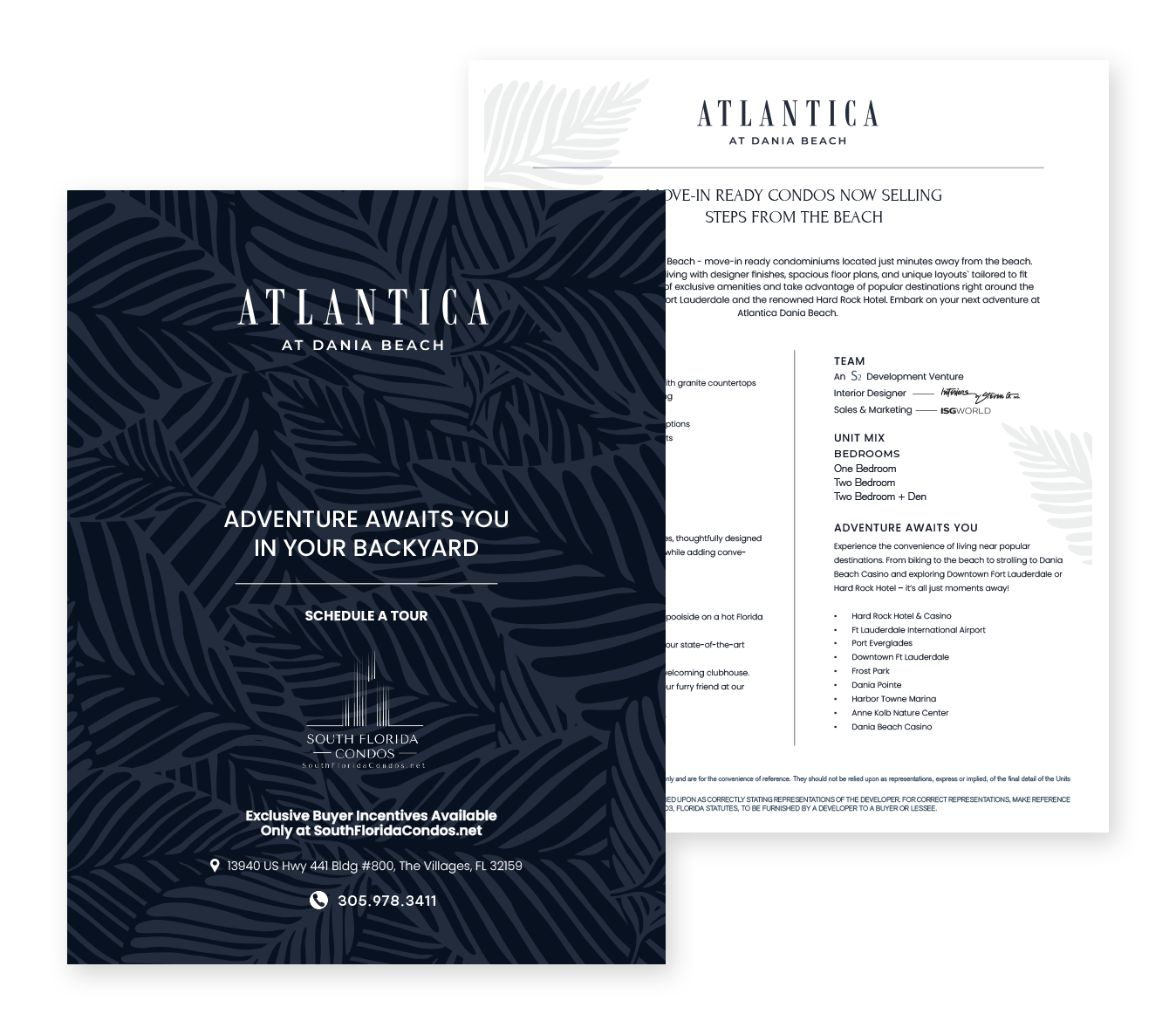 Looking for modern coastal living without the high-rise? Welcome to our Dania Beach location — a boutique, 3‑story community just steps from the beach. Perfect for those who want something more intimate than a tower, yet still crave beachside convenience. You're minutes from Fort Lauderdale Airport, Dania Pointe, and just 20 minutes from Aventura and FIU North Campus, with Florida National University and other top schools nearby. Stylish studios, 1‑bedroom, and 2‑bedroom-plus-den floorplans are ready to move into now — and your closing gets you an extra $1,000 back when you register with David Bryant of RE/MAX Premier.